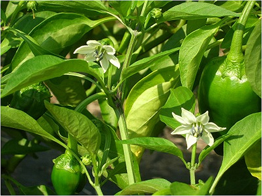 | 原因 | ピーマンは、根の張りが狭く浅いため乾燥に弱い作物であり、土壌水分が不足すると、生育および収量に大きく影響する。特に露地栽培では、夏期の高温、乾燥、強日射や畝間灌水による土壌水分の急激な変化や、停滞水による根の痛みが原因で収量が激減する。 ピーマンの着果周期は1カ月おきにみられるが、株の栄養状態によってはこの周期が著しく変動する。これは、着果負担に伴う根の活力低下が大きな原因で、土壌水分管理と肥培管理に注意することが重要である。