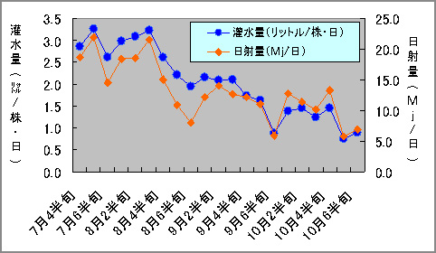 図2 日射量および拍動灌水量の推移